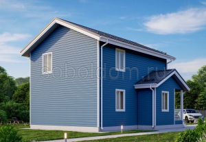 Углы, стойки, пояса выполнены из обрезной доски 150×40 мм с шагом 600 мм. Раскосины из обрезной доски 100×40 мм. Каркас стен утепляется мин. ватой Кнауф Термо Плита в 150 мм, с прокладкой ветроизоляции с внешней стороны и пароизоляции с внутренней стороны. Стены снаружи обшиваются имитацией бруса 17×140 мм (камерной сушки), через контр-рейку 50×20 (50×40) мм, крепится на оцинкованные гвозди. Внутри стены дома обшиваются имитацией бруса 17×140 мм (камерной сушки) на финишные гвозди через контр-рейку из доски 50×20 мм. |