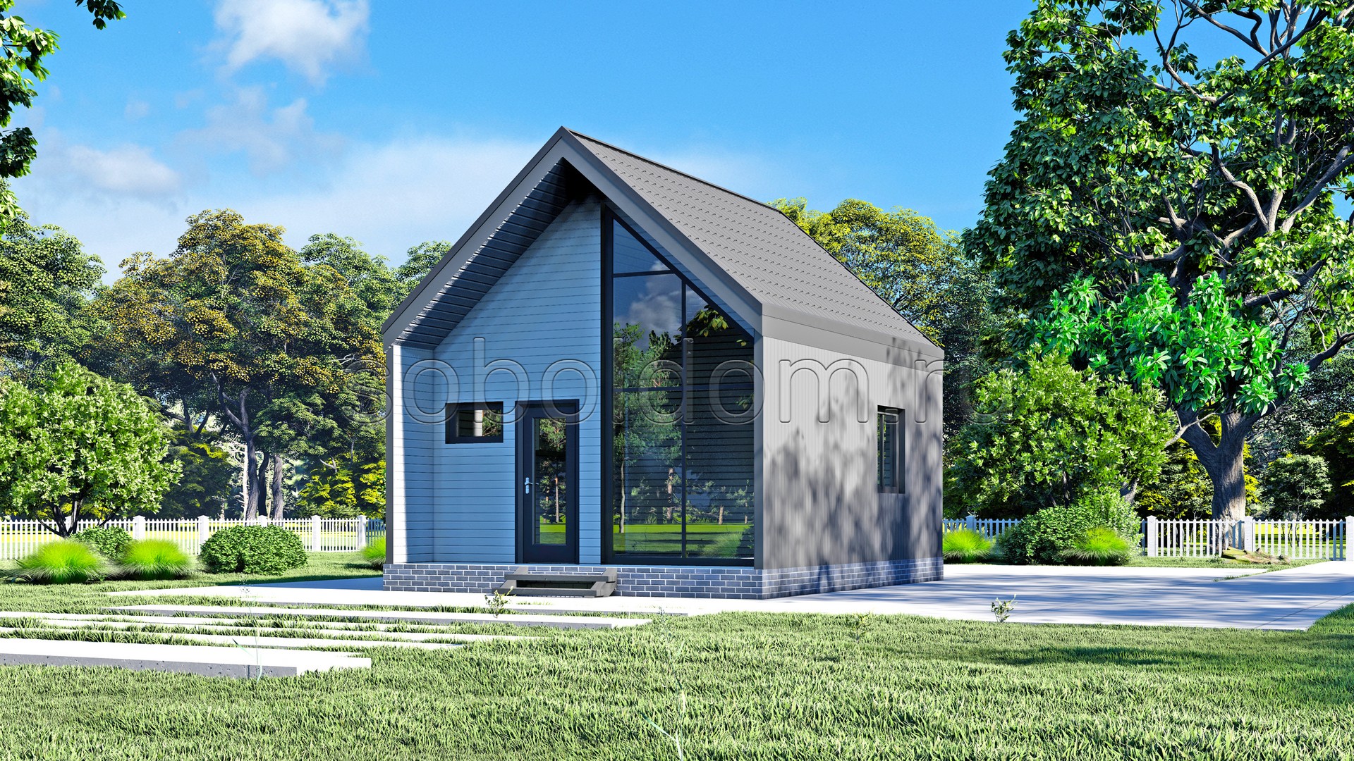 Свайно-винтовой или железобетонные сваи — стоимость фундамента рассчитывается отдельно. |
