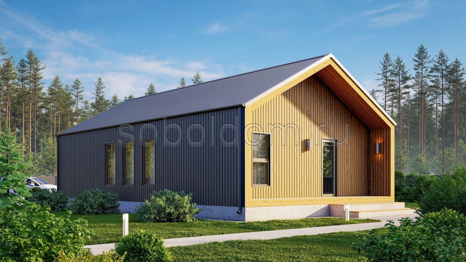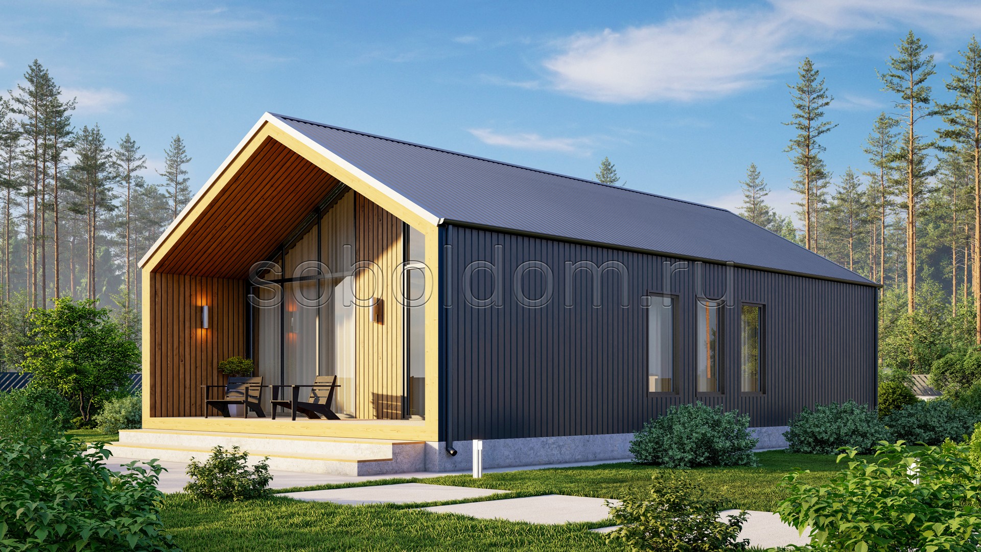 Углы, стойки, пояса выполнены из обрезной доски 100×40 мм с шагом 600 мм. Раскосины из обрезной доски 100×40 мм. Каркас стен утепляется мин. ватой Кнауф Термо Плита в 100 мм, с прокладкой ветроизоляции с внешней стороны и пароизоляции с внутренней стороны. Стены снаружи обшиваются имитацией бруса 17×140 мм (камерной сушки) и профлист (цвет на выбор), через контр-рейку 50×20 (50×40) мм. |