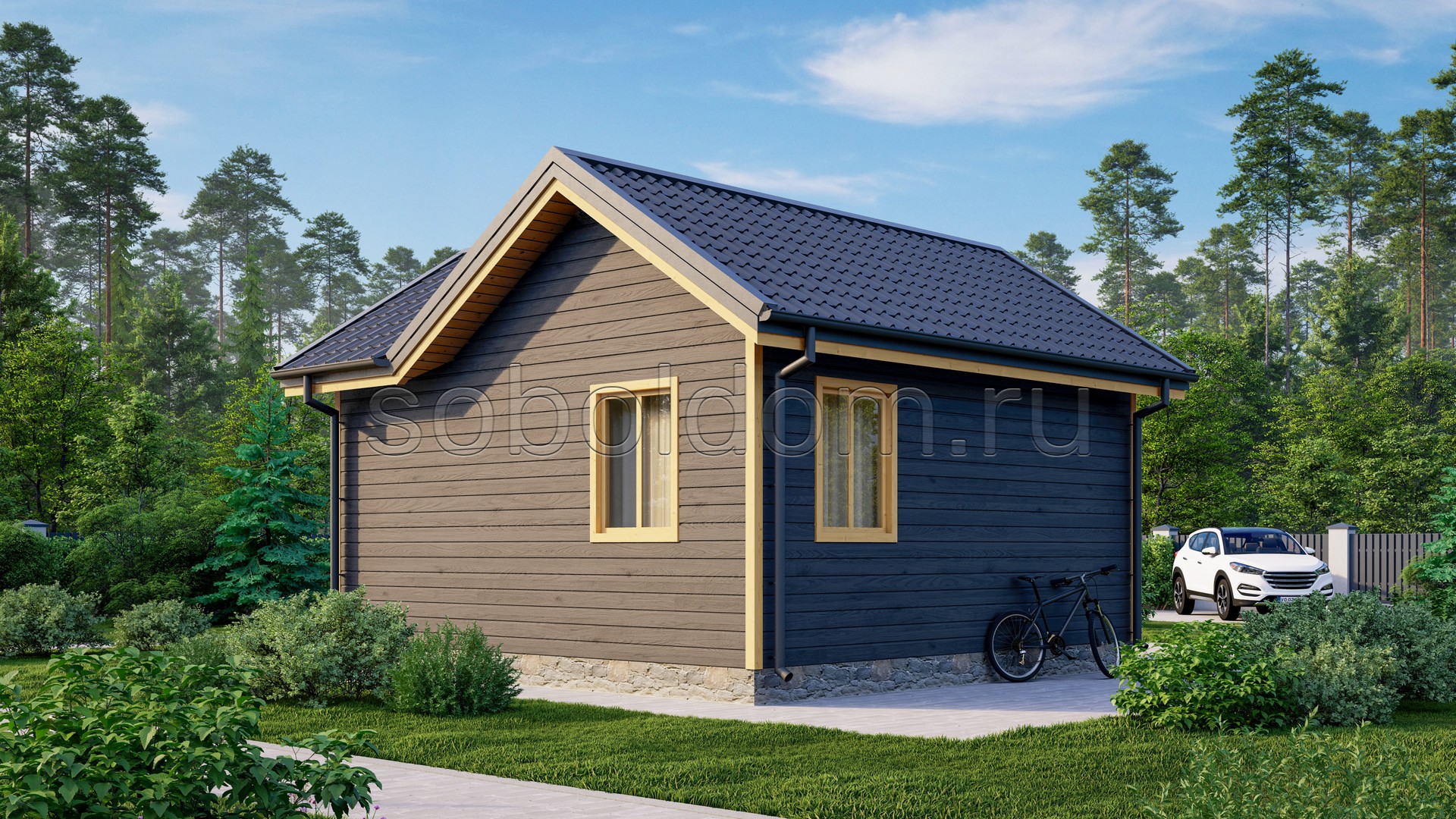 Каркас 100×40 мм или 150×40 мм. Снаружи обшивается хвойной вагонкой 16×140 мм (имитация бруса) камерной сушки (стыки допускаются). Возможна замена на блок-хаус. |